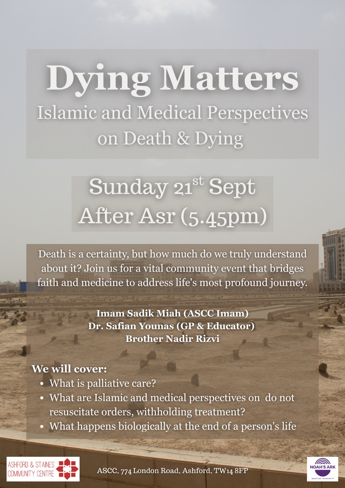 ![]() Every soul will taste death..." (Qur'an 3:185) Death is a certainty, but how much do we truly understand about it? Join us for a vital community event that bridges faith and medicine to address life's most profound journey. 📅 Date: Sunday, 21st September 2025 ⏰ Time: Immediately after Asr Prayer 📍 Location: Ashford and Staines […] |
